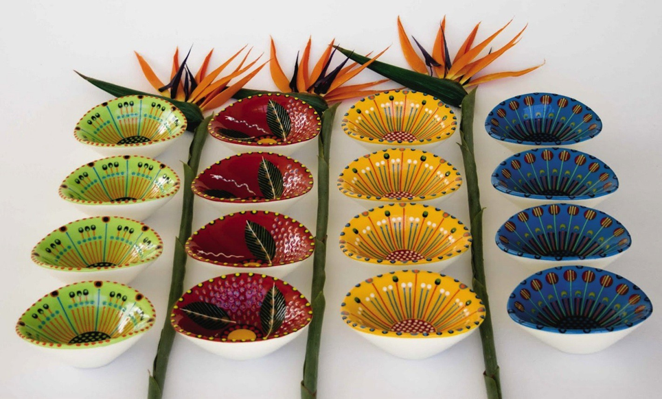 Dipinto a mano in un atelier vicino a Città del Capo, ogni oggetto della linea Potterswork è una piccola opera d’arte firmata dall’artista che lo ha creato